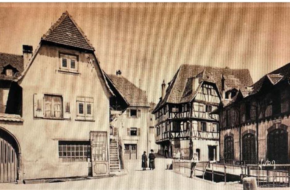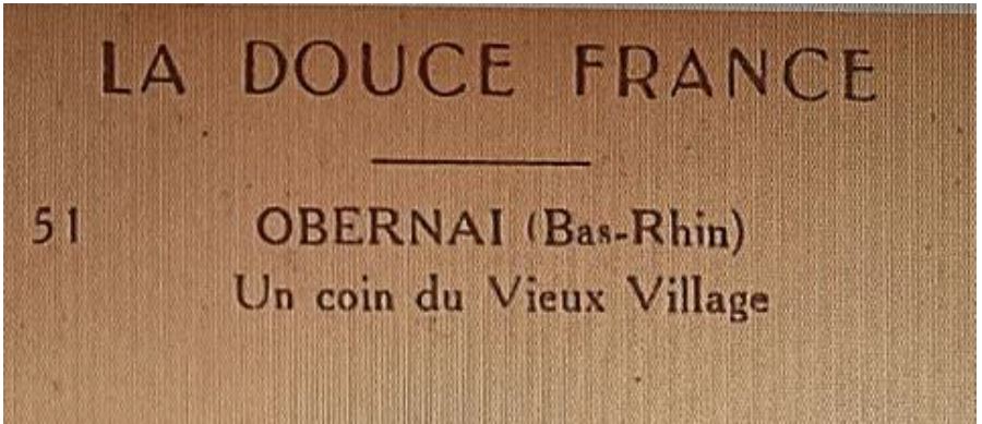 The identification of the location of the village (Obernai) represented on the two watercolors is very recent. The postcard appearing in the photos associated with this page made it possible to establish this with complete certainty.