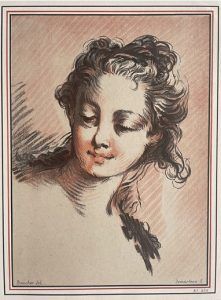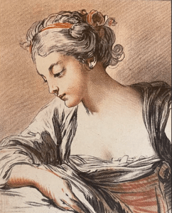 F29.14 Tête vue de face regardant vers le bas aux deux crayons d’après François Boucher