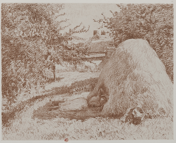 A l’abri de la meule de foin. Lithographie de William Thornley d’après Camille Pissarro.Origine du visuel : INHA (0618_doucet_FEST617) – Sous licence Ouverte En 1900 est publié un premier recueil de 25 lithographies de Camille Pissarro. Elles sont exécutées par William Thornley pour le peintre. Le recueil est édité chez Héssèle en 108 exemplaires et il est imprimé … Lire la suite