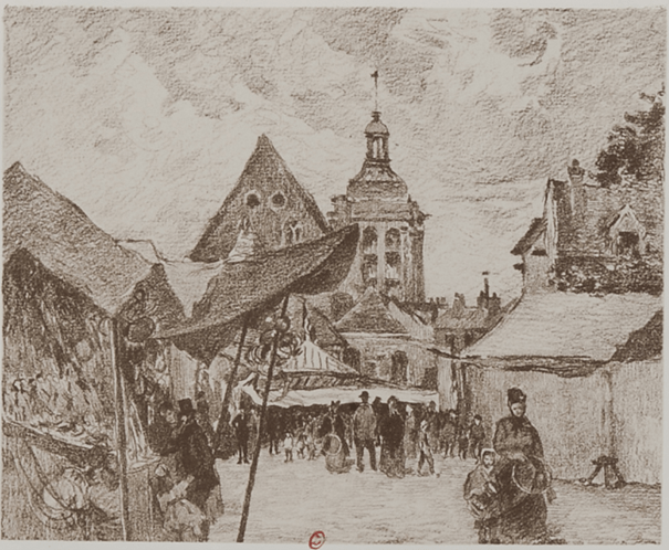 Jour de Fête à Pontoise. Lithographie de William Thornley (d’après une œuvre de Camille Pissarro datant de 1872). Origine du visuel : INHA (0618_doucet_FEST617) – Sous licence Ouverte. En 1900 est publié un premier recueil de 25 lithographies de Camille Pissarro. Elles ont été exécutées par William Thornley pour le peintre. Le recueil est édité … Lire la suite