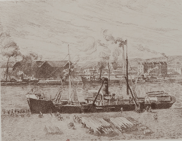 Bateau à Rouen. Lithographie de William Thornley (1857-1935) d’après Camille Pissarro (1830-1903). Origine du visuel : INHA (0618_doucet_FEST617) – Sous licence ouverte. Il s’agit de la 21ème planche de l’album édité chez Hessèle en 1900 et imprimé en 108 exemplaires par R. Engelmann (Atelier Belfond). Dimensions de la vue : 22 x 28,5cm. William Thornley … Lire la suite
