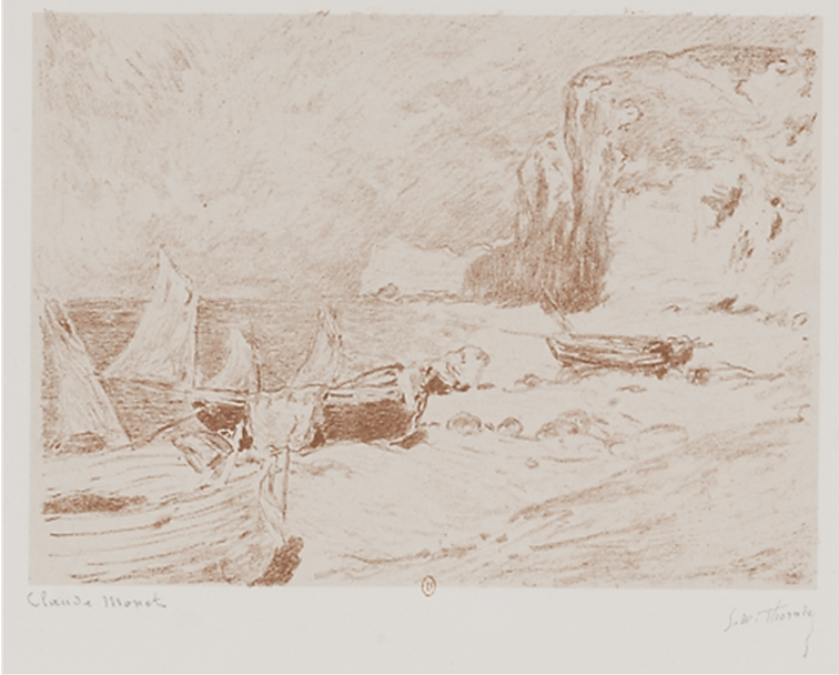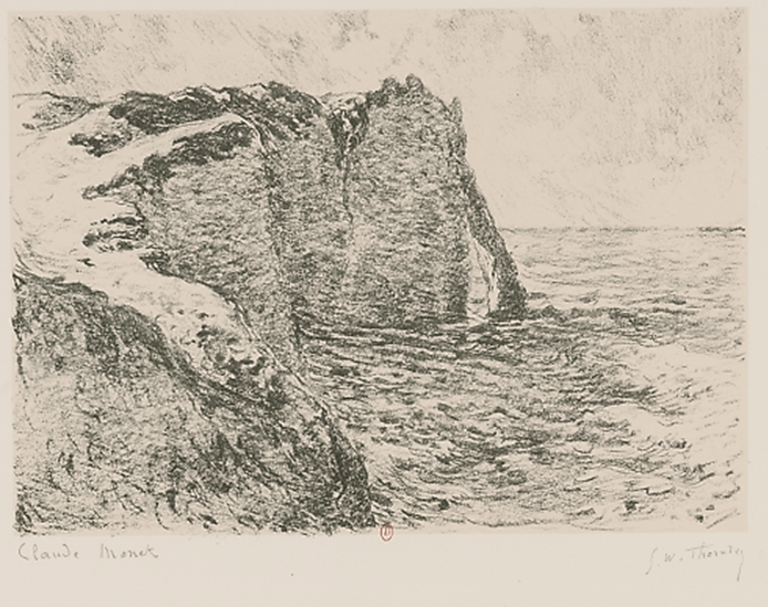 Etretat, La Falaise d’Aval. (Lithographie signée de Monet et de Thornley)Origine du visuel : Institut national d’histoire de l’art INHA (0618_doucet_FEST83) – sous licence Ouverte. Il s’agit de l’une des 20 lithographies du Recueil réalisé par William Thornley entre 1890 et 1894 d’après Claude Monet (Editeur Mancini, Imprimeur Belfond et Cie). Un exemplaire complet de ce recueil est consultable … Lire la suite